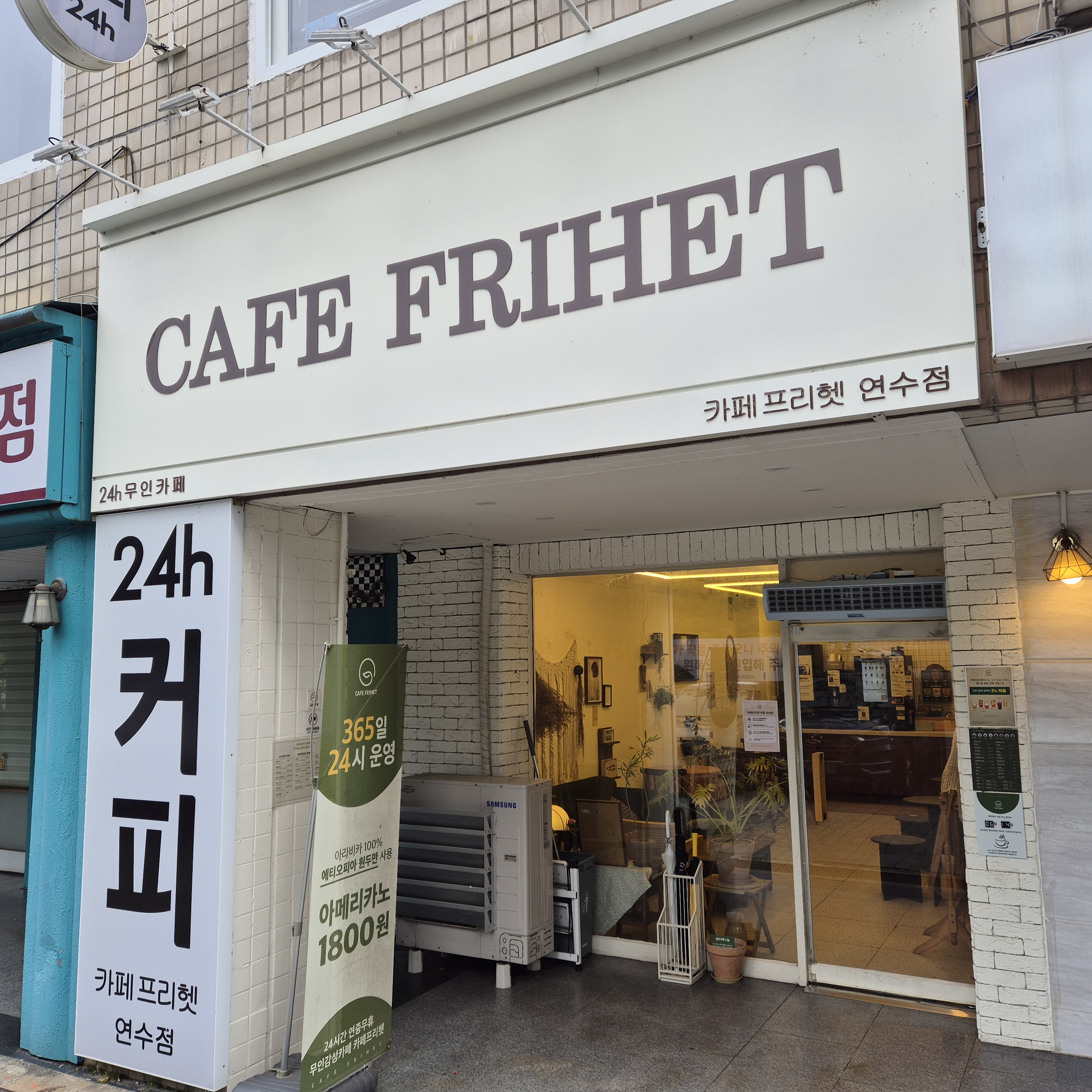 카페 입구입니다. 연수 우성 1차 아파트 정문으로 들어오시면 좌측 상가에 바로 보이네요.